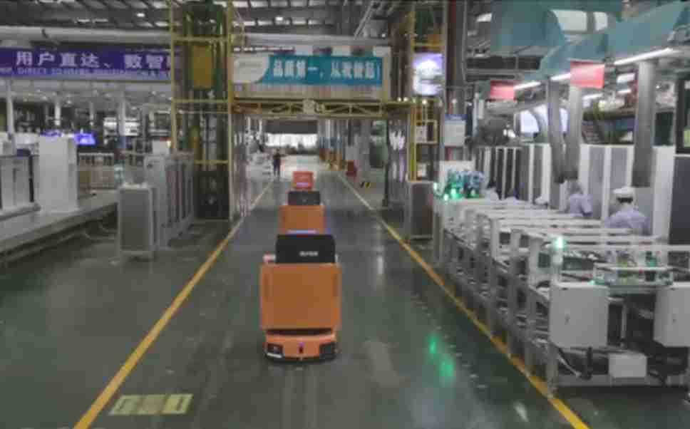 为车载冰箱物流配送打造的智能解决方案,,,,包含产中物流通过潜伏举升AMR搬运至线边,,,,产后成品物流智能仓储,,,,流程包含产中物流智能齐套入库,,,,线边安灯叫料AMR智能配送至线边,,成品入库、、、、出库,,,,通过无人堆高车机器人,,,,智能仓储管理替代人工作业管理,,,,实现更高存储、、更高效率、、、、更具柔性化的解决方案。。。。